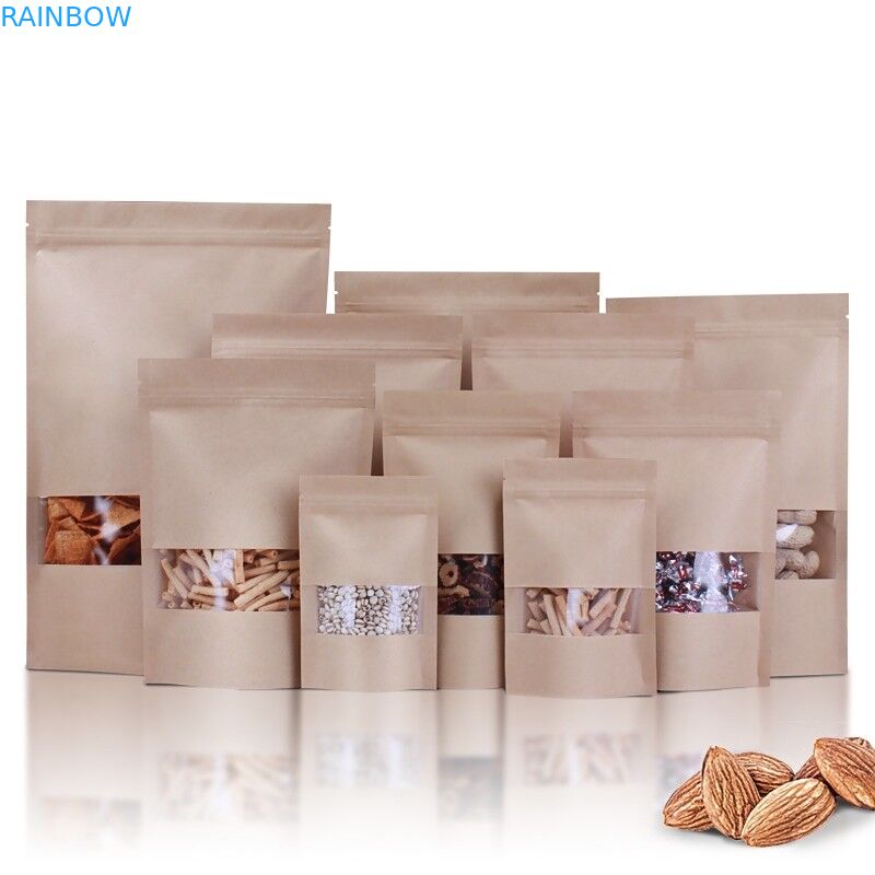 Kundenspezifisches weißes Standup Kraftpapier-Taschen-Reißverschluss-Kaffee-Nahrungsmittelspeicher-Packpapier-Tasche mit Reißverschluss mit klarem Fenster